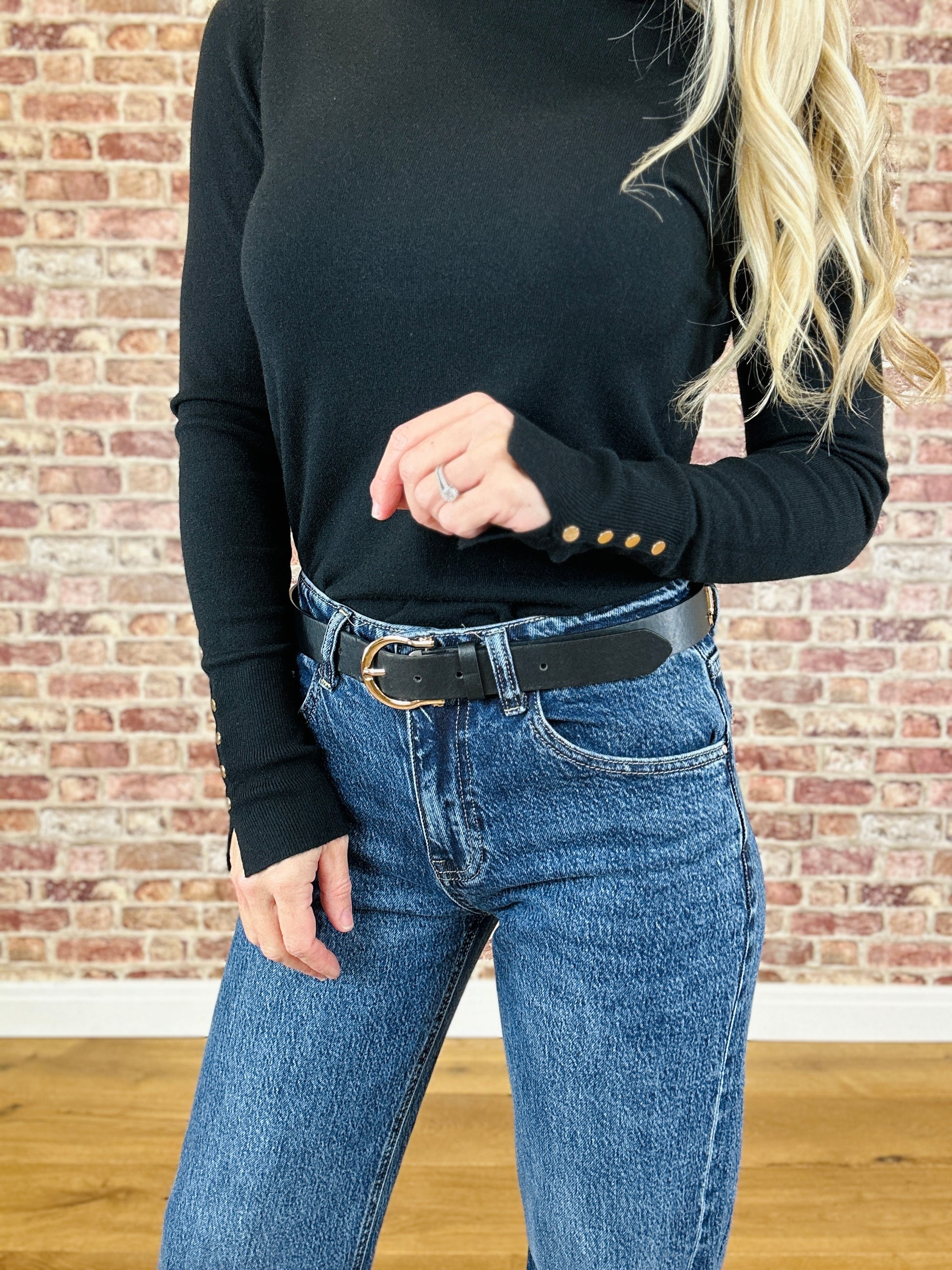 - Full length sleeve with gold button detail